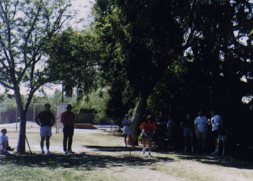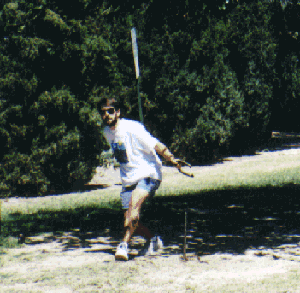 Scott Watterson demonstrates his expert technique at horse-shoes. The crowd gathered to watch the finals. Who would win the very first horse-shoe tournament?