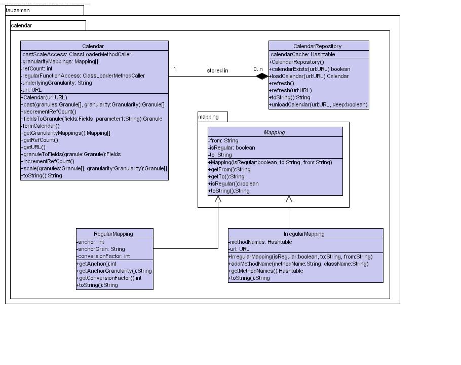 UML Diagram for the Calendar Class
